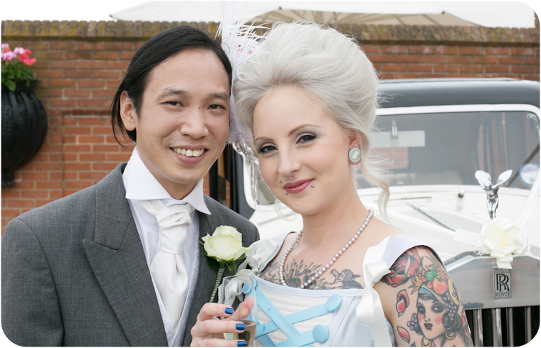 I knew from the moment I arrived that Lotti's wedding would be unique, she excitedly showed me her corset and shoes and accessories, which I loved photographing. I particularly liked her cameo plugs she had designed just for the wedding. Soon Lotti was getting into her beautiful outfit.. a gorgeous Marie Antoinette ensemble.. she looked perfect